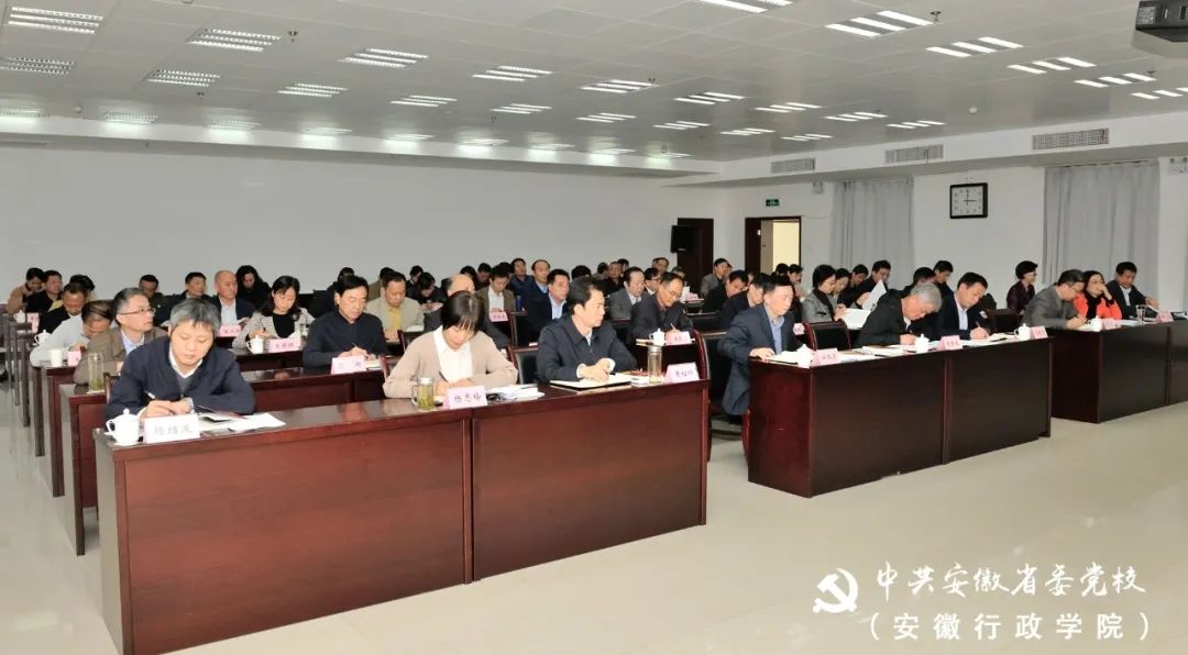 11月9日至11日,省委党校(安徽行政学院)理论学习中心组党的十九届五中全会精神专题学习研讨班在本部举办,校(院)领导,副教育长,各处室、直属单位主要负责人(含党总支书记)共约70人参加学习研讨。省直机关工委组织部部长王永娟为组长的省直机关党组(党委)理论学习中心组学习巡听旁听第4工作组到场指导。