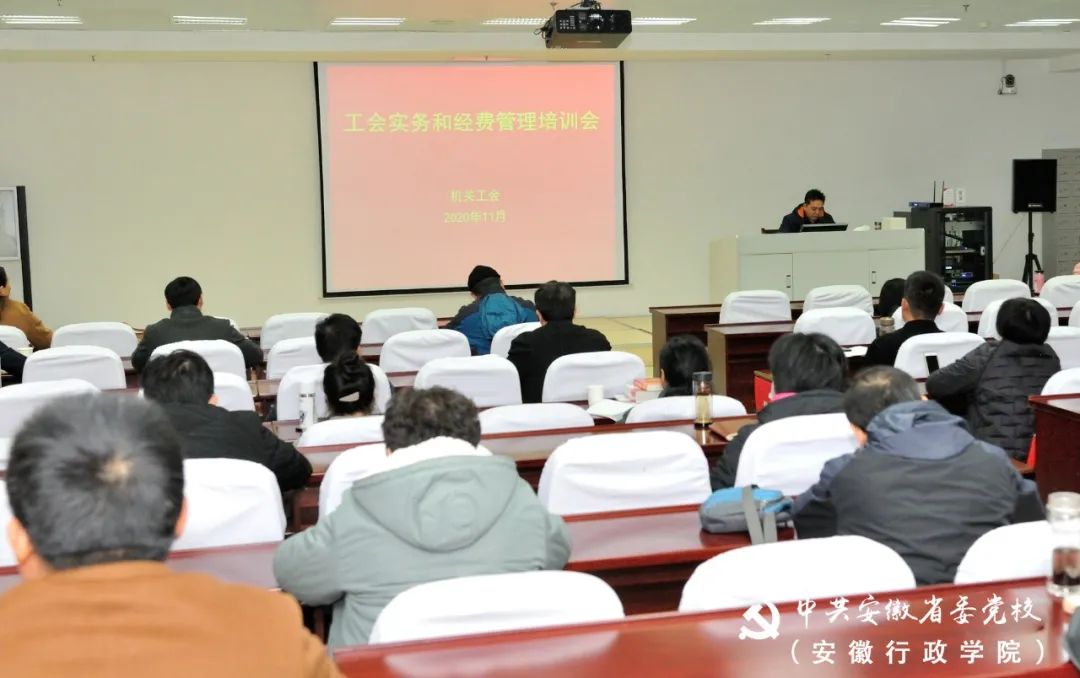 为进一步加强工会干部队伍建设,提高基层工会干部的政策水平和业务能力,11月30日下午,省委党校(安徽行政学院)举办工会实务与经费管理培训会。工会“三委”委员、二级工会委员、部分工会小组长和工会秘书等80余人参加了会议。