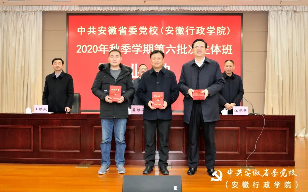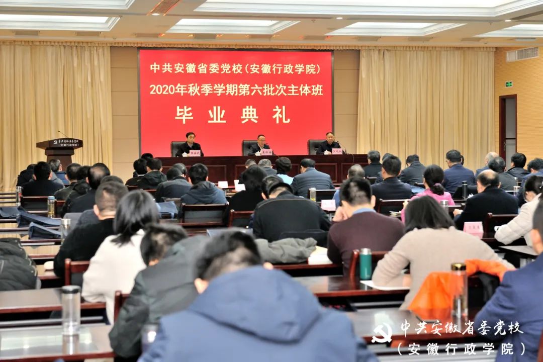 12月25日上午,省委党校(安徽行政学院)举行秋季学期第六批次主体班毕业典礼。副校(院)长江观伙主持,副校(院)长袁维海、王林武,副教育长王敬志出席。第78期市厅级干部进修班、第19期选调生进修班全体学员和相关处室负责人参加毕业典礼。